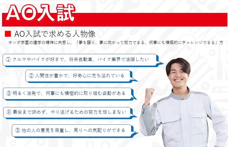 学力だけにとらわれず、個人の個性や今までの実績等、総合的に人物評価をし、合否を決定する入試方法です。