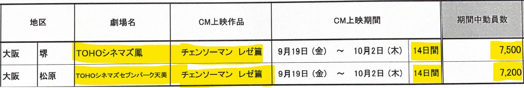 【漫画・アニメの動員力はすごい!】「劇場版 チェンソーマン レゼ篇」へのスポットCM結果!