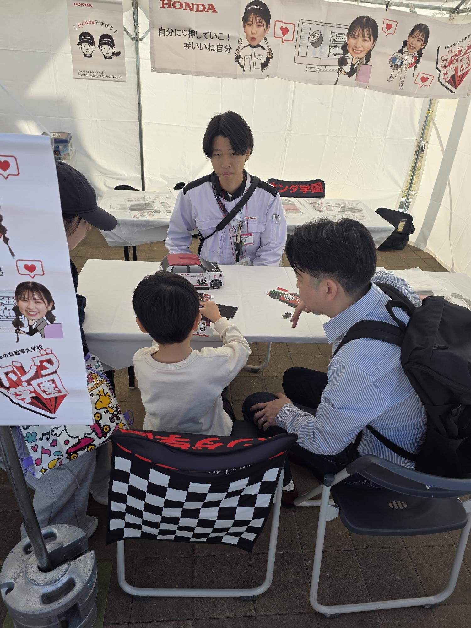 11月8日(土)、9日(日)の2日間に神戸のメリケンパークで行われた「兵庫カーライフフェスタ2025」に学園生と教職員で参加(ブース出展)してきました。ホンダ学園ブースでは、レースに参戦している本校のレース車(N-ONE)の展示説明と親子で楽しめる「ティッシュBOX型クラフト制作」を実施しました。また、昨年に引き続き、Honda四輪販売店であるモビリティ近畿様のKIDSメカニック体験へ学園生を派遣し、お子様のクルマのメカニック体験をしていただきました。