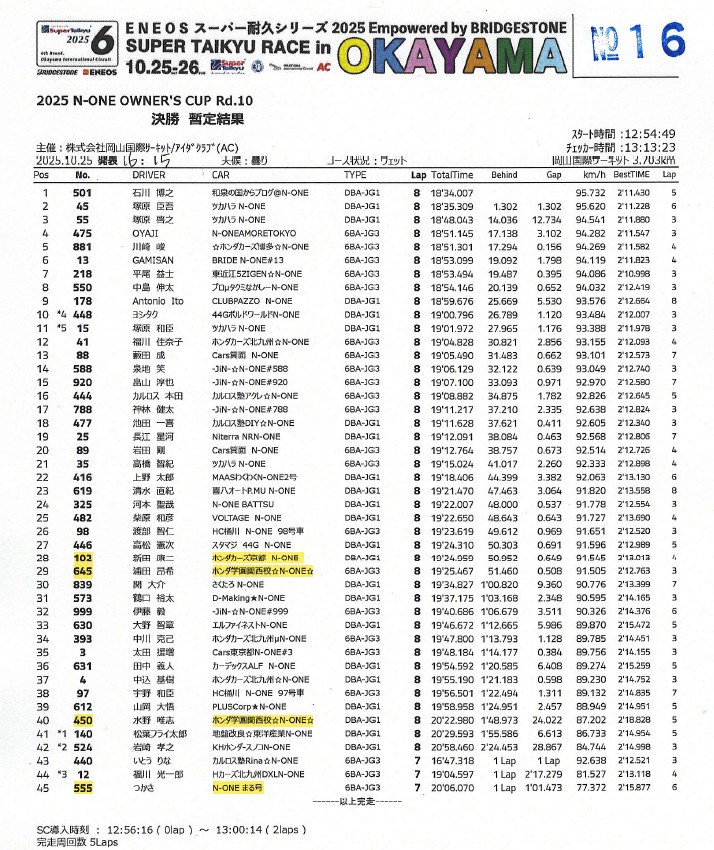 また、今回もHonda Cars京都様、SRファクトリー様のメカニックサポートも実施させていただきました。いつも貴重な機会、ありがとうございます。