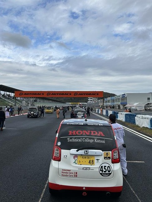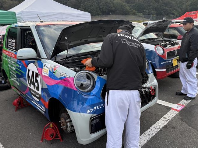 10月25日(土)に岡山県の岡山国際サーキットで行われた、「N-ONE OWNER’S CUP※」第10戦に『HTEC R&M 部』が2台体制で参戦しました。23日(木)に学園を出発し現地入りし、レースに臨みました。今回の遠征メンバーは1年生から4年生の全学年12名です。前回の富士から数か月空いた後でしたので、レース最前線の現場に緊張しながらも、ワクワクした様子も見られました。