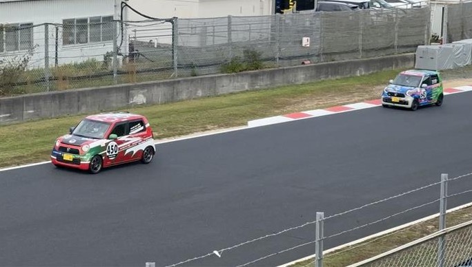 レースが始まると一周目から波乱の展開で、接触等がありセーフティーカー(以下SC)が出る展開になりました。SCランが2周目で終えると再スタート。その後も横転が発生するなどしましたが関西校の2台は接触もなく、無事にチェッカーを受けて感想することができました。また、メカニックサポート2台の内の555号車が他車からの追突によりコースアウトしましたが、レースに復帰し、2台ともチェッカーを受けることもできました。