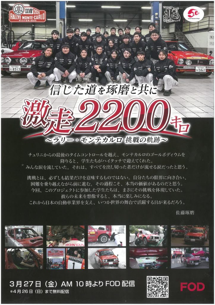 3月27日(金)10時からFOD独占配信!ラリーモンテカルロ挑戦の軌跡