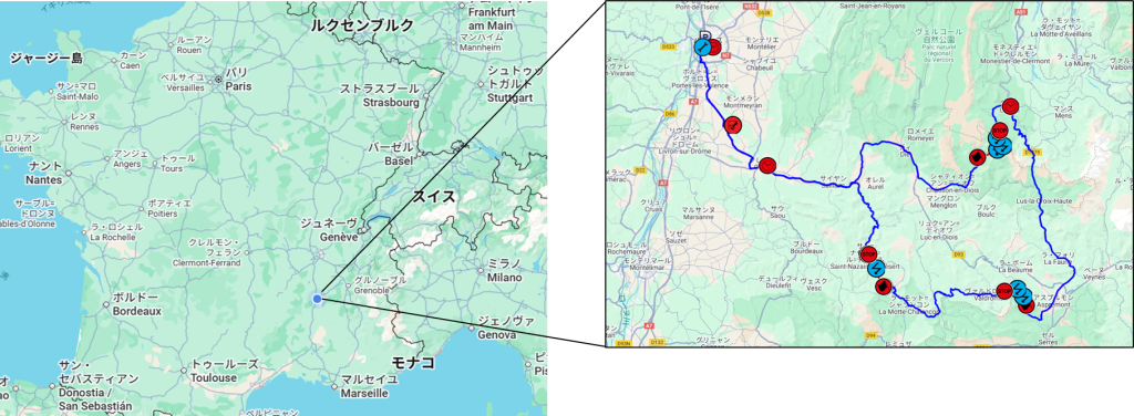 この下見により、本番でペースを合わせて走行できるように、コースの状況(コーナー半径、R変化、路面状況、狭い広いなど)を詳細に記録していきます。