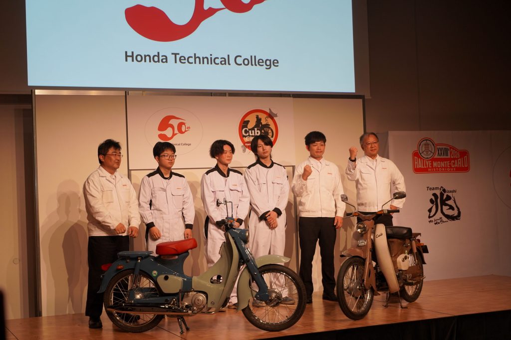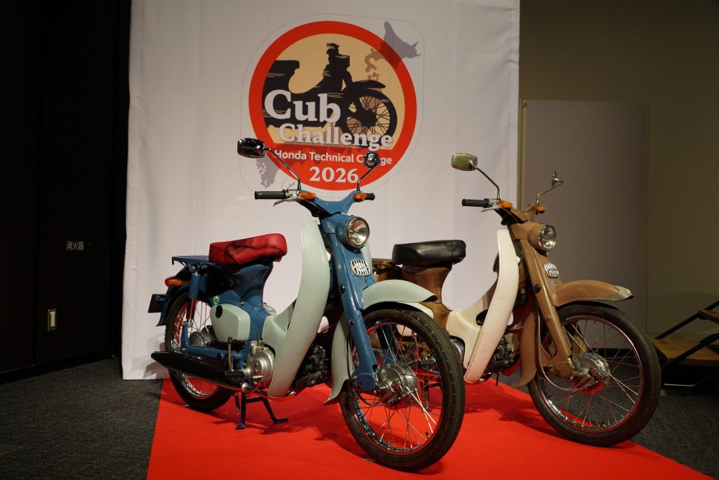 国内を学生たちがレストアした発売当初の古いCubで、ホンダ学園卒業生が日本各地を行脚します。