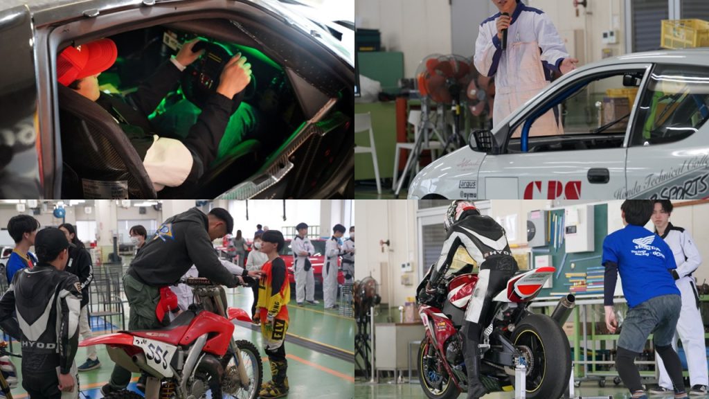 クルマ、バイク、開発コースに分かれ、実際の授業のような体験をし、途中で学生達とおしゃべりしたり、昼休憩には学食を無料で楽しんでいただいたり、抽選会をしたり、朝から夕方まで楽しんでいただきました!