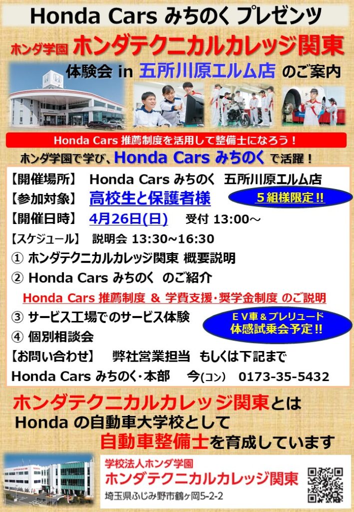 ホンダカーズみちのく × ホンダ学園 コラボインベントを開催いたします!