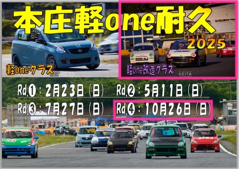 開催される 『本庄軽one耐久シリーズ2025 Rd.4』 参戦のご連絡をいたします。