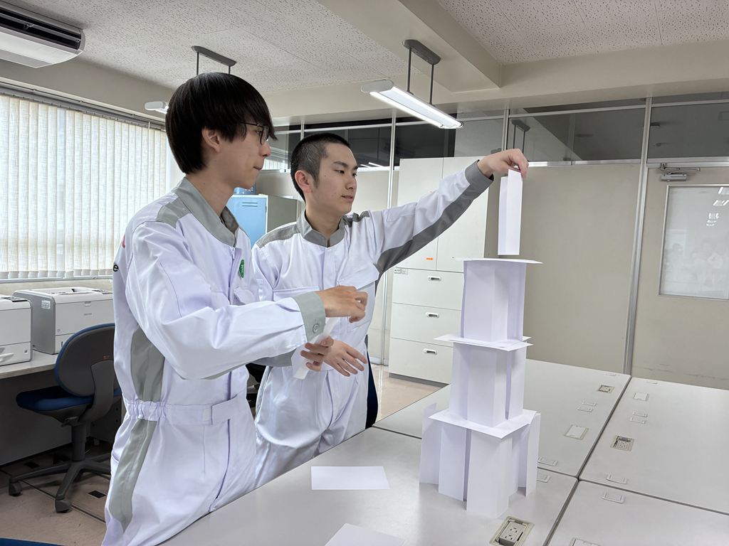 ペーパータワー研修では数人でチームを組み、A4用紙を使い時間内にできるだけ高い自立可能なタワーを建てます。タワーの高さが最も高いチームの勝利です。ペーパータワーはチーム全員の協力が不可欠なゲームとなっているので、チームビルディングに効果的です。メンバーひとりひとりが持てる能力を最大限に発揮し効果的なチームワークの要素を実践的に学びます。