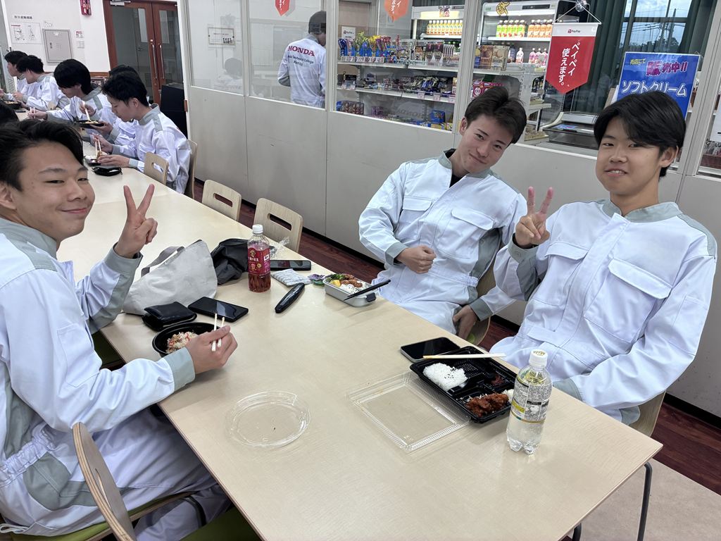 学食はまだお弁当の販売しかしていませんが、仲間と楽しく会話しながら食事する姿が見られます。