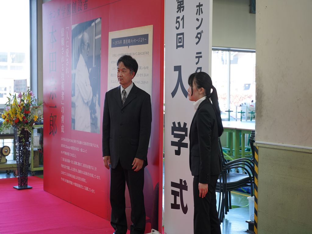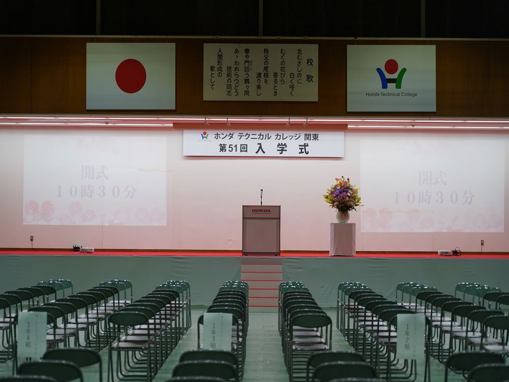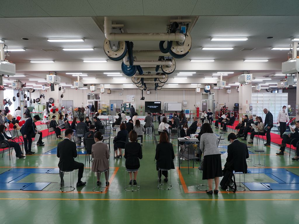 式場入場前の待機場所は実習場です。部活動やプロジェクトの車両を並べました。