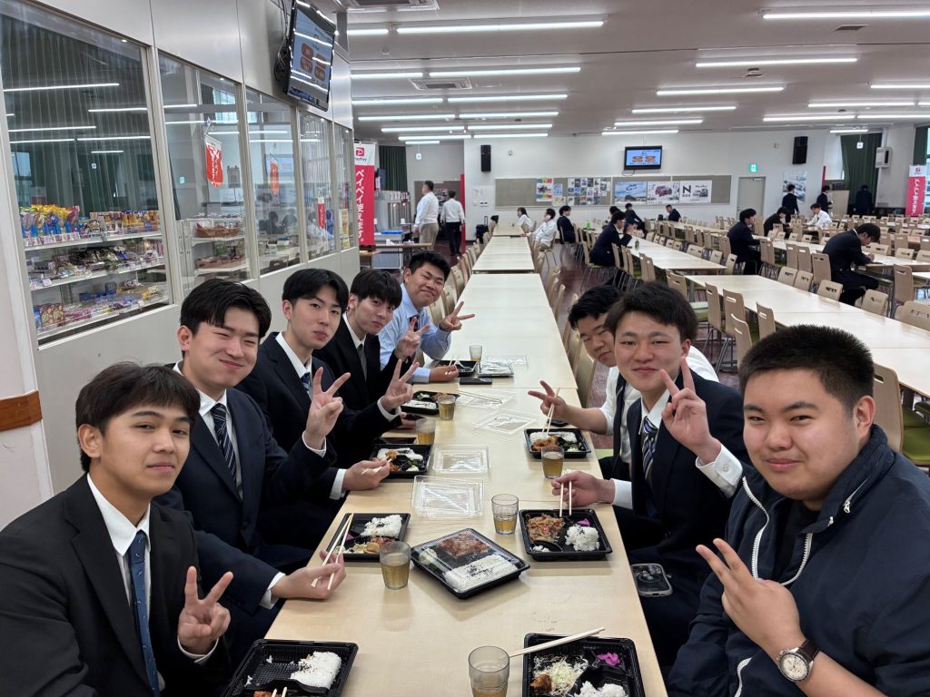 学食にも行ってみんなでお昼も食べました。今回はお弁当対応のみで静かな学食でした。先輩たちがいる賑やかな学食は木曜日から始まります!