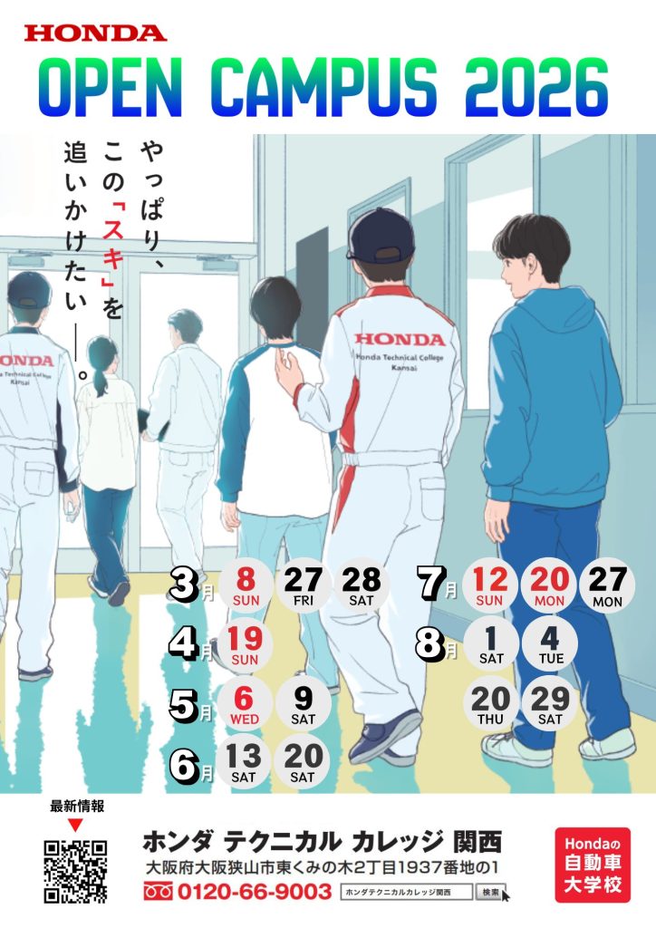 ご理解の程、よろしくお願いいたします。また、オープンキャンパスへの参加をご検討されている方につきましては、4月以降のオープンキャンパス(整備体験なし)もしくは、8月に開催する『夏の体験授業2026』へのご参加をご検討していただけますよう、よろしくお願いいたします。