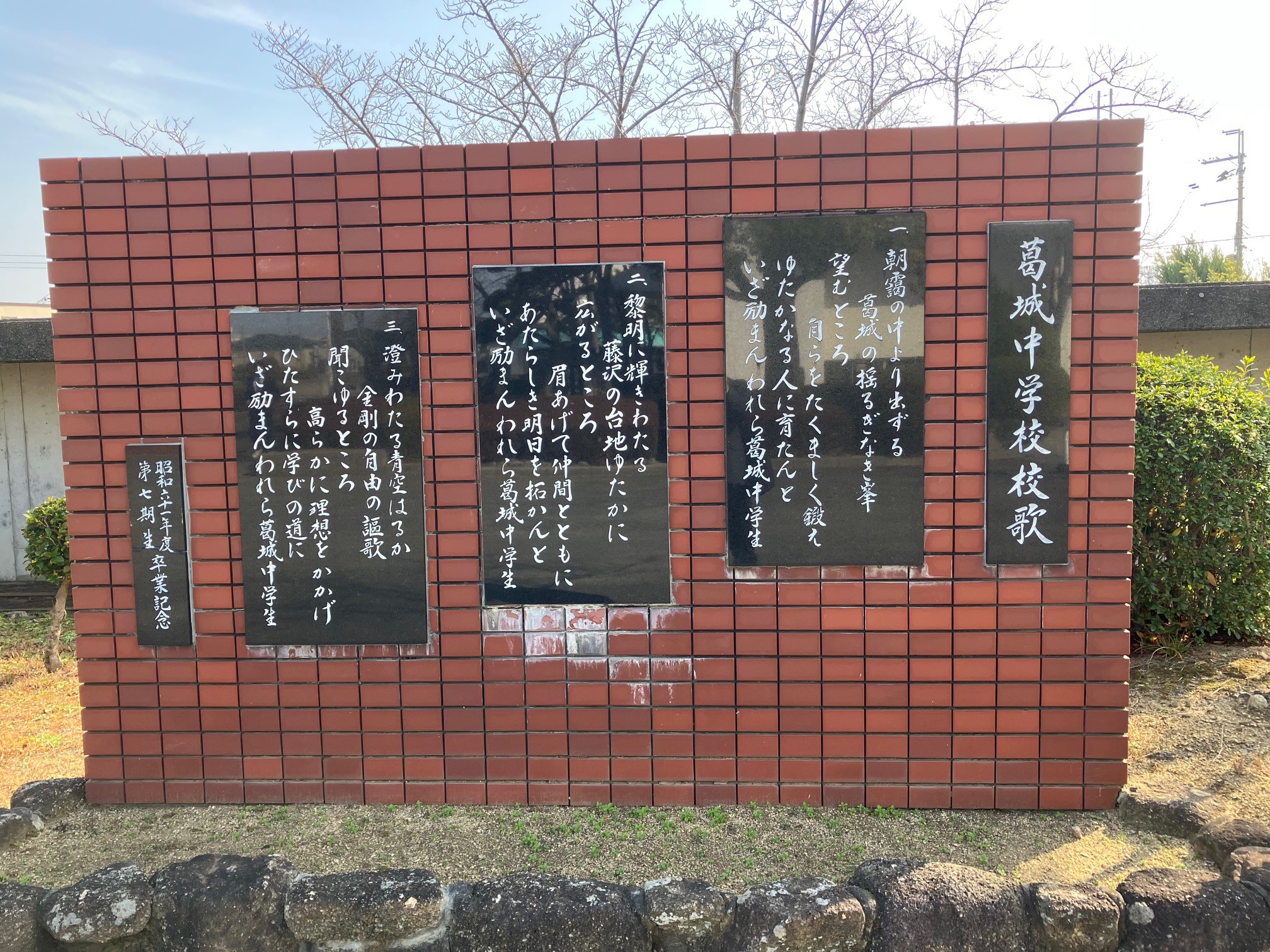 校門を入るとすぐに校歌がありました。とても立派!
