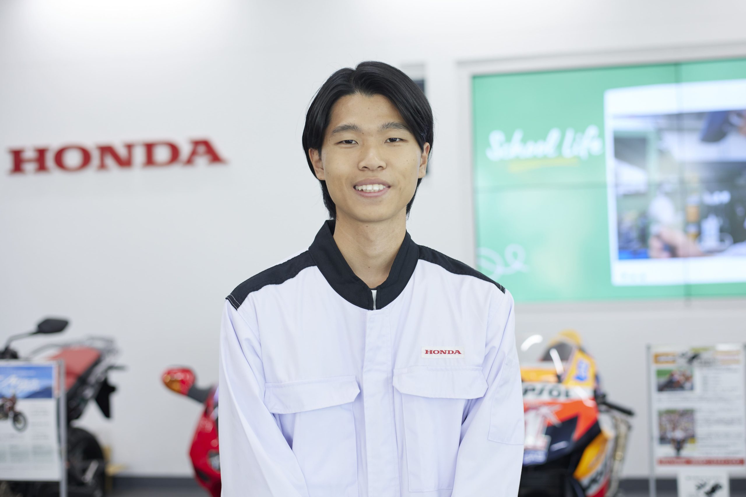 高校卒業後の進学先を考えたときに、自分もHondaのように誰かの夢や世間を驚かす凄いこと、モノづくりをする人になりたいと思い、ホンダ学園へ進学をしました。