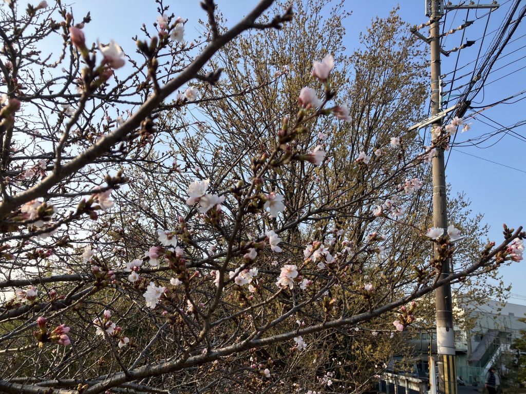 本校の敷地内や近隣の公園の桜も、日が経つにつれて咲き始めました。6日(月)の入学式には、新入生を出迎えるかのように満開になりそうです。(^^)/