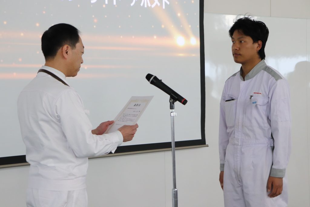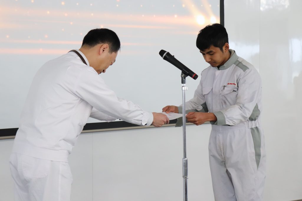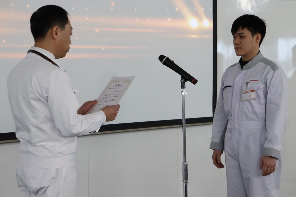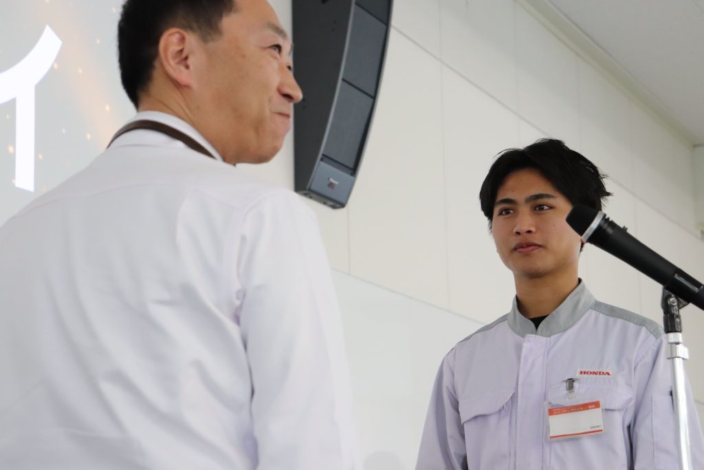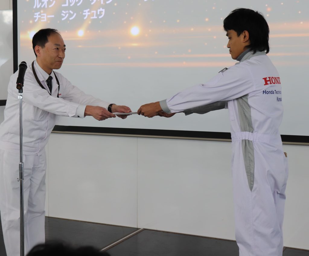 2月12日に講堂にて、2025年12月の受験したJLPT(日本語能力試験)で、N1・N2・N3に合格した留学生の表彰を行いました。留学生は、ホンダ学園で自動車の知識・技術を身に付けることはもちろんですが、日本で生活し、働くうえで必要となる日本語のスキルも同時に伸ばしています!