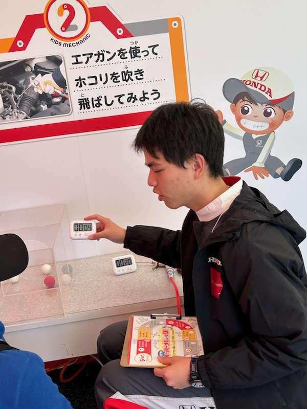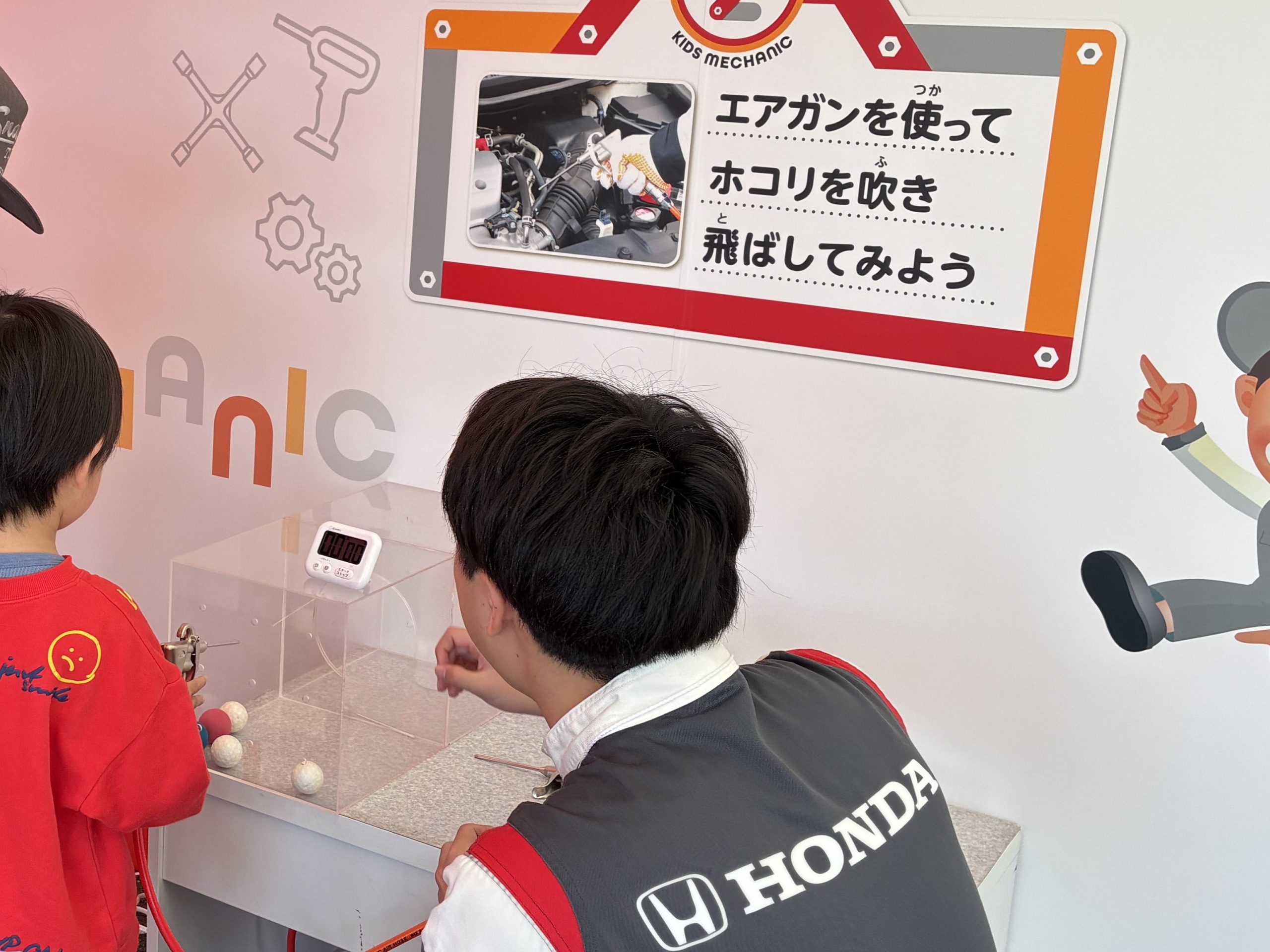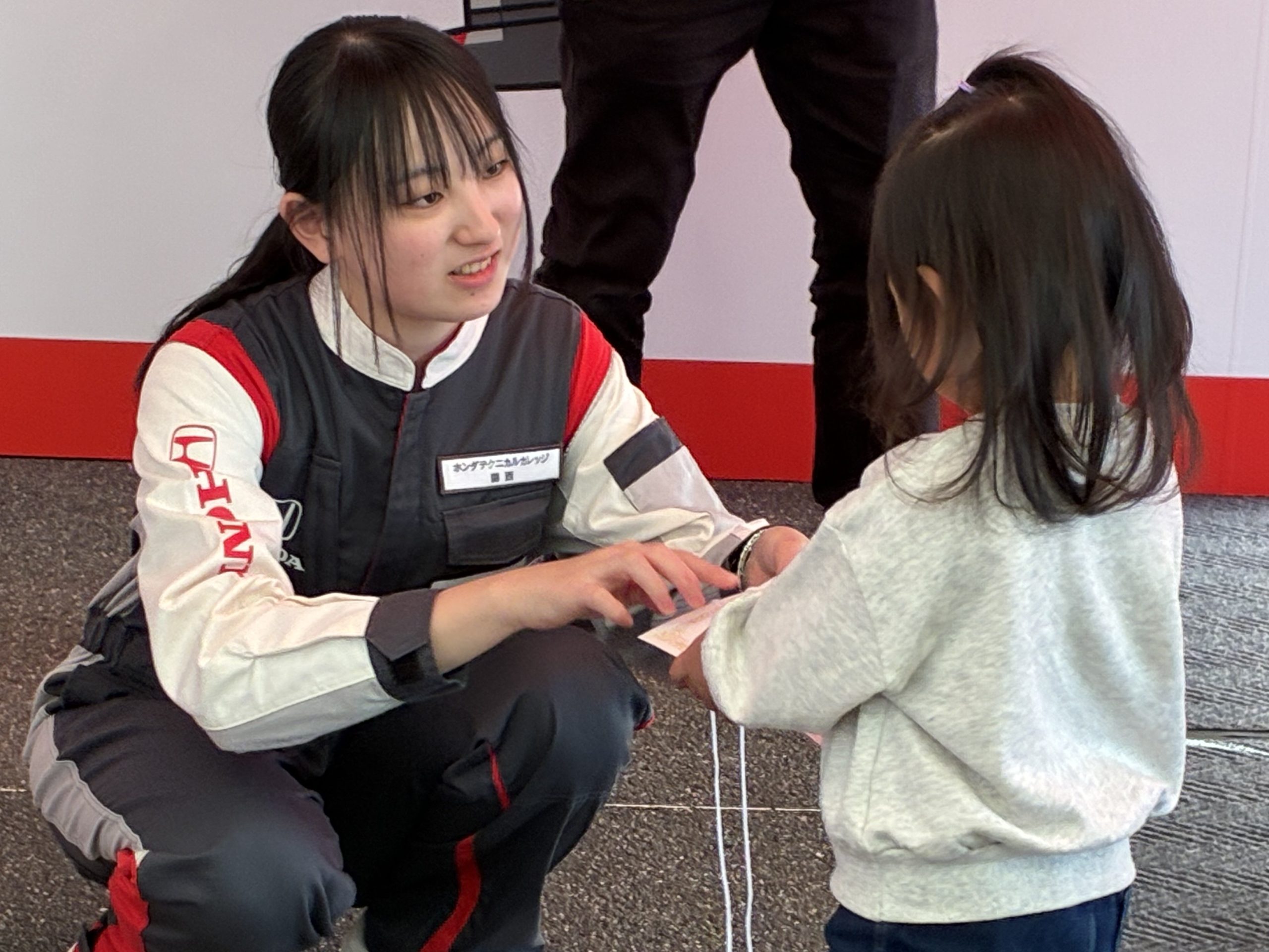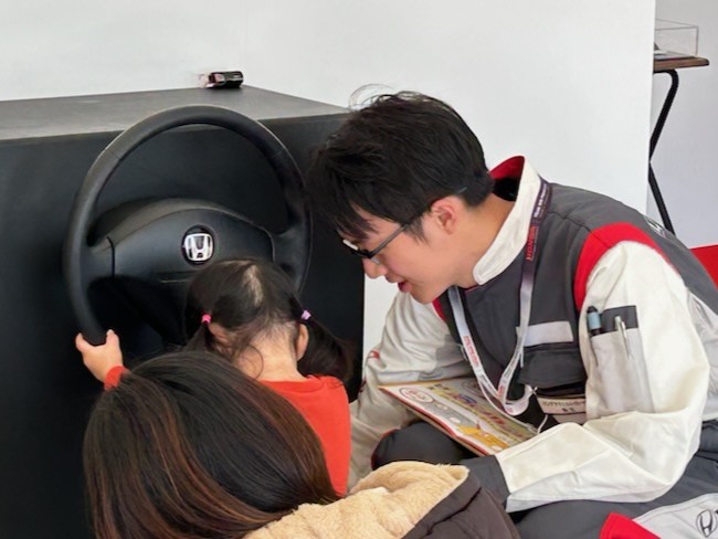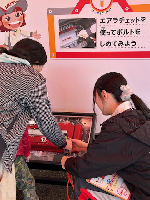 11月22日(土)、23日(日)に三重県で行われた「Enjoy Honda鈴鹿サーキット」の『KIDSメカニック学園』のブースに学園生5名がお子様の整備体験のサポートをさせていただきました。2日間で957名の方が、『KIDSメカニック学園』に訪れてくれました。Hondaの四輪販売店(Honda Cars)のメカニックが着ているユニフォームにお子様が着替え、記念撮影を姿には保護者様、お子様の笑顔はもちろん、周りの方へも笑顔が広がっておりました。(^^)/