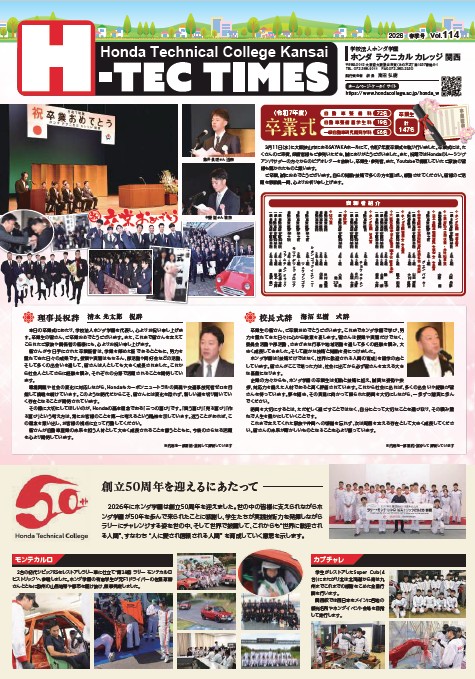 学園新聞「H-TEC TIMES 2026春季号」が完成しました。盛り上がった「学園祭」と「校外授業」、そしていつも感極まる「卒業式」です。一足早く、その内容をHPで公開します。また、在校生の保護者様には、近日中に郵送でお届けします。