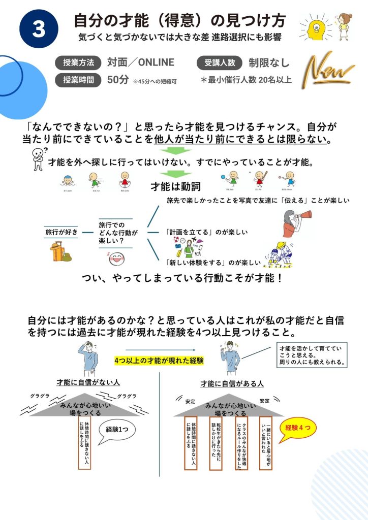【新授業!】選べる4つの出前授業に「自分の才能(得意)の見つけ方」を追加