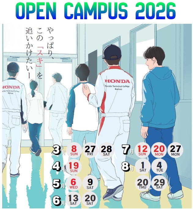 ホンダ学園は大阪府内で一番規模の大きい自動車大学校です。2025年3月に実施された自動車整備士国家資格筆記試験には全員受験し、一級小型整備士は100%合格、二級自動車整備士は99.6%の合格率!オープンキャンパスでは、最新設備や授業が見学ができ、創設以来継続している就職希望者の就職内定率100%の秘密を確かめられる!